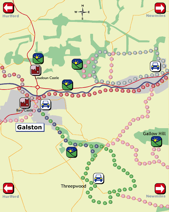 Follow the waymarkers to take you back into Galston or retrace your footsteps