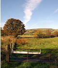 The path, known locally as the Doggartland, continues past a farm gate to meet the road leading to Cunningham Baidland Farm. Continue West to the Flashwood Bridge, a small bridge at Flashwood Farm. Take the road on the left to head back down to Dalry. On the left is the Putyan Burn and its little waterfalls.