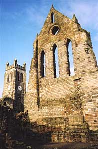 | Kilwinning Abbey dates from 1187 and was one of the finest examples in Scotland. The south transept is from the 13th century and a fine processional door is nearby. It stands next to the 18th century Abbey Church. The site is well worth a visit on your tour through Kilwinning. For more information on the history of the Abbey click here to visit the local website. |